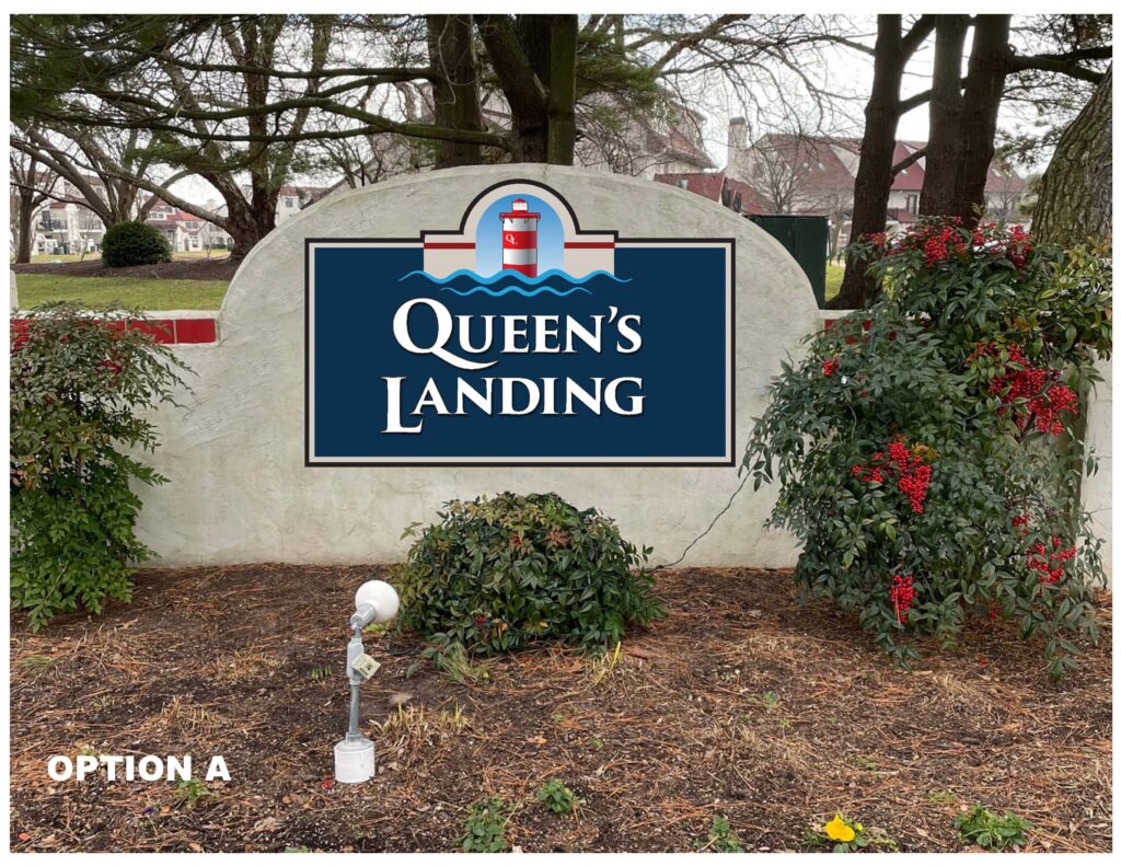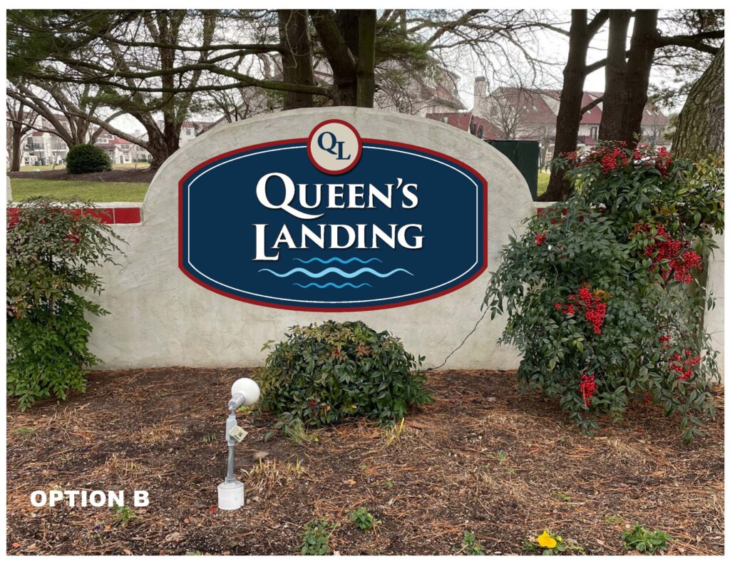 Hello Queen’s Landing – As you may have noticed, our community signage has deteriorated and it is time for a refresh! We engaged a graphic designer to create options for our new entry signs and the Board has narrowed the choices to three. We would like your input to make a selection. Please vote for your favorite: